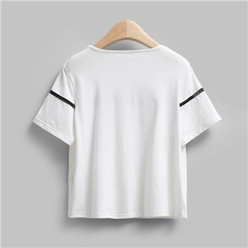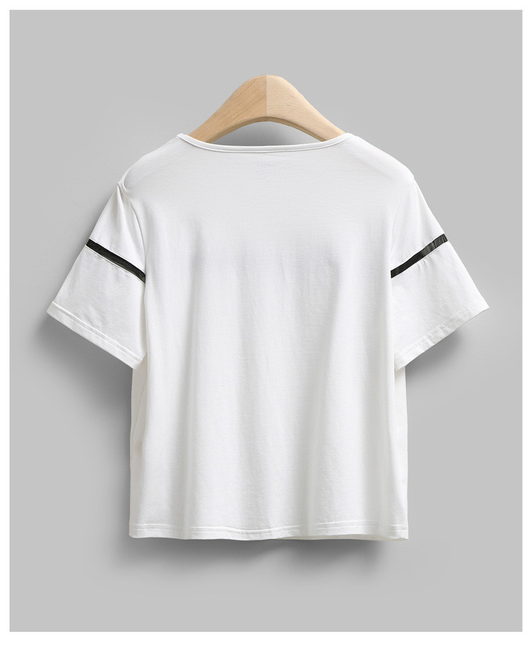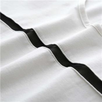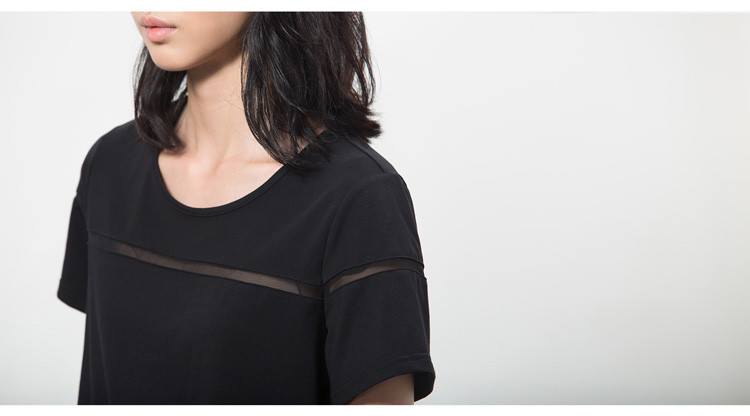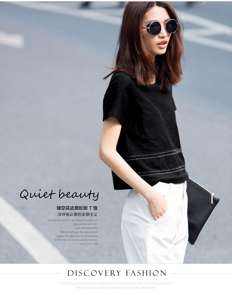 AMII及简2015夏纯色T恤女镂空花边拼接宽松大码圆领上衣